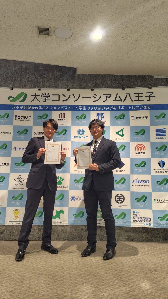 大学コンソーシアム八王子学生発表会で宇井翔太さんが最優秀賞、河原崎祐作さんが優秀賞を受賞!!!